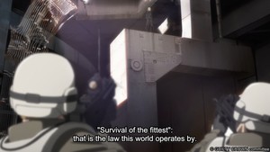 I'm assuming that the first three episodes are just the tip of the iceberg that is Guilty Crown because most of what I saw was more inept than actively insulting. But I did toss a knowing smile at these early glimpses of both fervent nationalism and social Darwinism. Surely, combining these philosophies can only portend careful, thoughtful developments later.