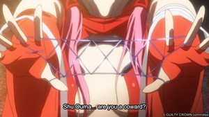Yeah, that's the rub of this experiment. Guilty Crown is a grower, not a shower. It takes until about midway for the full weight of its awful ideas to bear fruit. But if nothing else, it makes it nakedly obvious how tied up in bizarre ideas of masculinity it is with its main character.