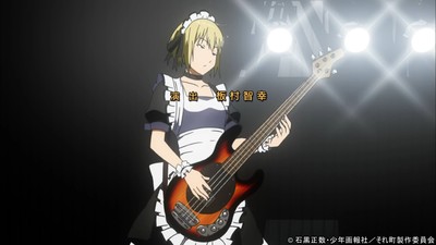 I'll admit, my biggest temptation to watch past episode three was to see more of Futaba. A short-haired maid in a choker playing bass is, in fact, a pretty good Christmas present.