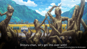 I think I get where the episode is coming from—it's partly a commentary on the perceived dichotomy between chaos and structure—but I also get where you're coming from. Furthermore, this is the first episode of the season in which Mizushima is credited with the script, so one could argue that this is the closest to his "vision" for the series overall, for better or worse. I suppose a lot of it comes down to whether or not you find it hilarious that he threw in upwards of a dozen slides detailing the biographies of characters from a fake anime that's only tangentially germane to the warped setting of the train stop.
