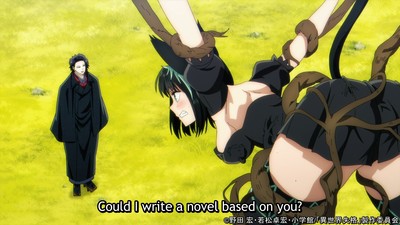 I do find it darkly hilarious that even the irreverent Dazai-based spoof isekai can't help but eventually hand its ostensibly weak hero an overpowered instakill ability and a gaggle of wives to haul him around.