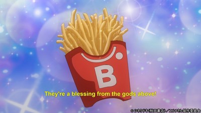 And I can certainly give this adaptation this much: it's a far cry from what we usually cover in these seasonal isekai columns. It's half-length. It doesn't have video game menus. It does have lots of nipples. It's kind of a breath of fresh air. Or a waft of warm air from a freshly fried pile of potatoes.