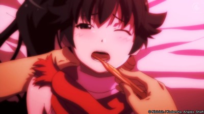 Bakemonogatari, I think it ends up being the weakest collection of stories due to its focus on simpler introductory arcs. The true joy of this franchise lies in all of the character developments and interactions beyond that. And that's why