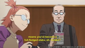 otaku tropes influence and inform each other, and that also feeds into Kenzaburo's wanting to encourage and nurture the younger generations.