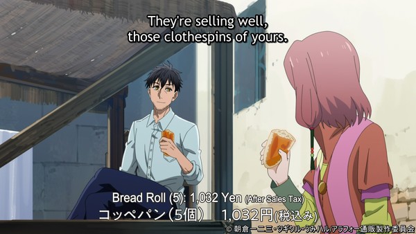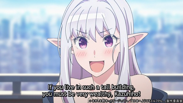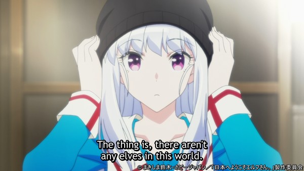 It's the sort of setup that feels like it could go some places later, even as the central feature of its first episode is just the elf girl eating different Japanese foods.
