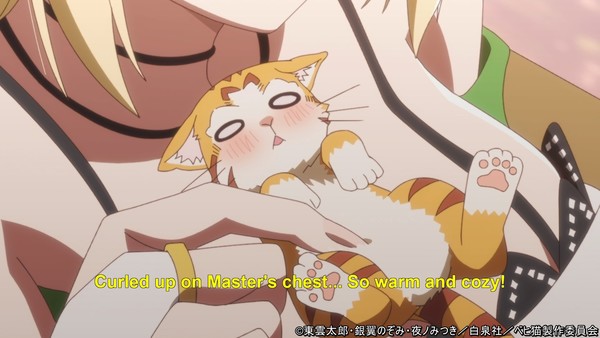 Beheneko forthrightly asks its audience to imagine how awesome it would be to take a literal catnap on an elf girl's giant rack, and it sweetens the pot further by making said elf girl openly lust for her pet cat. That's awful, and I love it.