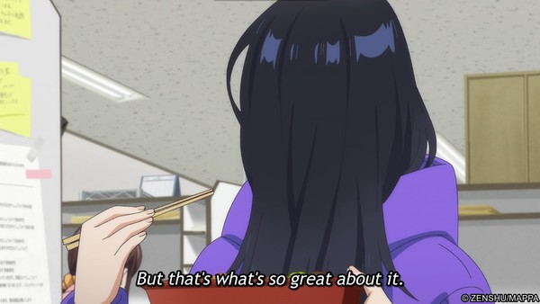 Its setup begs for metatextual readings about how artists and audiences approach storytelling. Is Natsuko "fixing" her favorite anime by interfering with it, or is she changing it into something else entirely? That's a neat thematic playground.