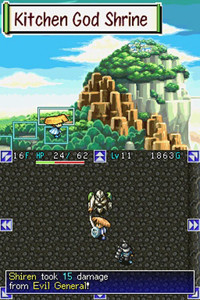 The game itself even has a disclaimer warning you not to throw your DS on the event of your death, so it certainly isn't for those who take their losses lightly. At least in Etrian Oddessy, you can reload your last save if you get your backside handed to you. This is not an option in Shiren, so be warned at how ridiculously fast the difficulty can ramp up. The game WILL teach you to be very, very careful and that everything can come crashing down in very short order if you let it.