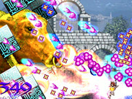 As well, as your familiar blocks shots and you collect skulls and other shiny objects, you'll be able to power up your attack mode, making you do a huge amount of damage, with a full screen clearing on activating, and again if you managed to stay powered up for the full duration without getting hit. During the period, all items which would normally power up this skill will add to the game's points multiplier, meaning you can (if you don't get hit) score absurdly high if you're good enough.